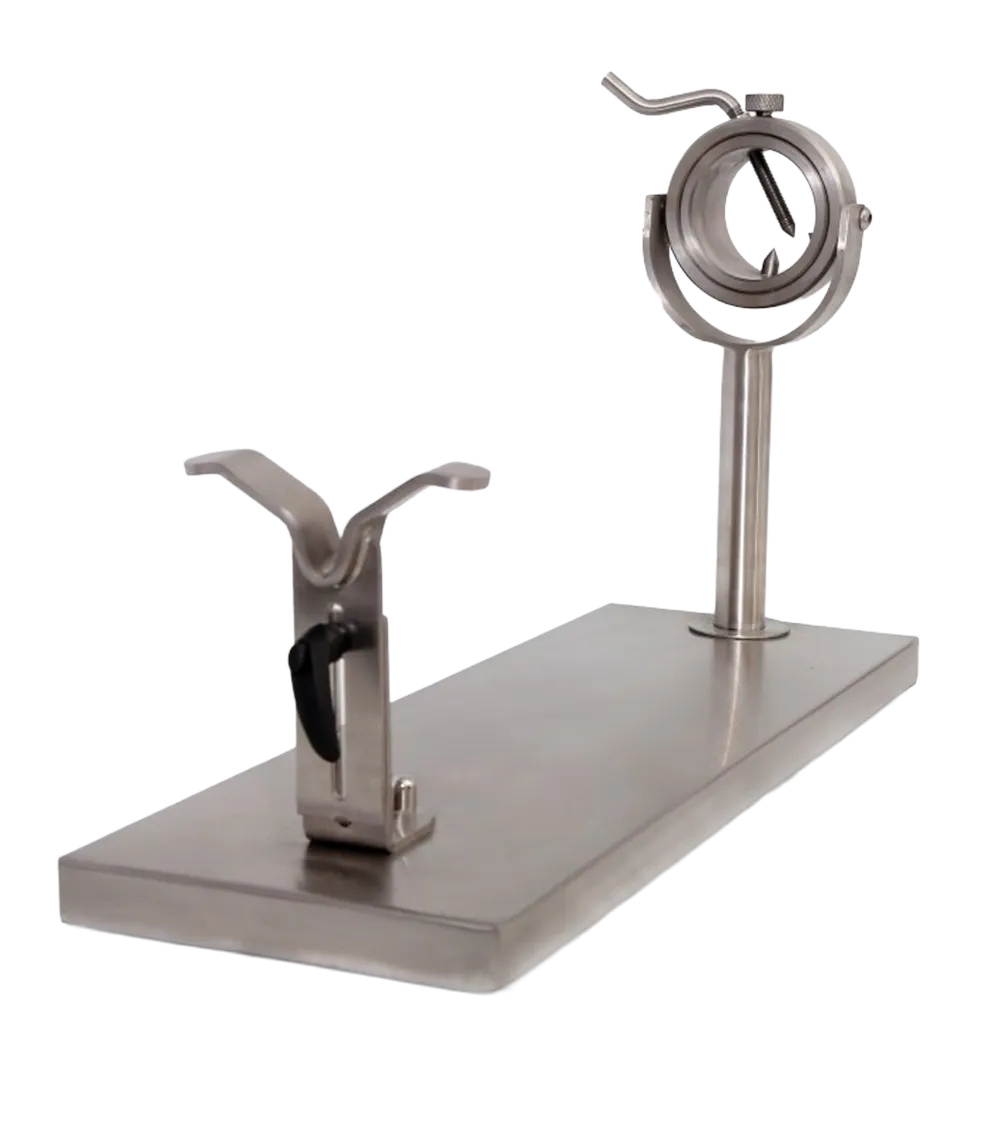 Su base sólida de 55 x 20 cm y su sistema de sujeción firme garantizan una sujeción impecable del jamón, permitiendo realizar cortes uniformes, seguros y profesionales. El sistema giratorio facilita el acceso a todas las partes de la pieza sin esfuerzo, optimizando la experiencia de corte.